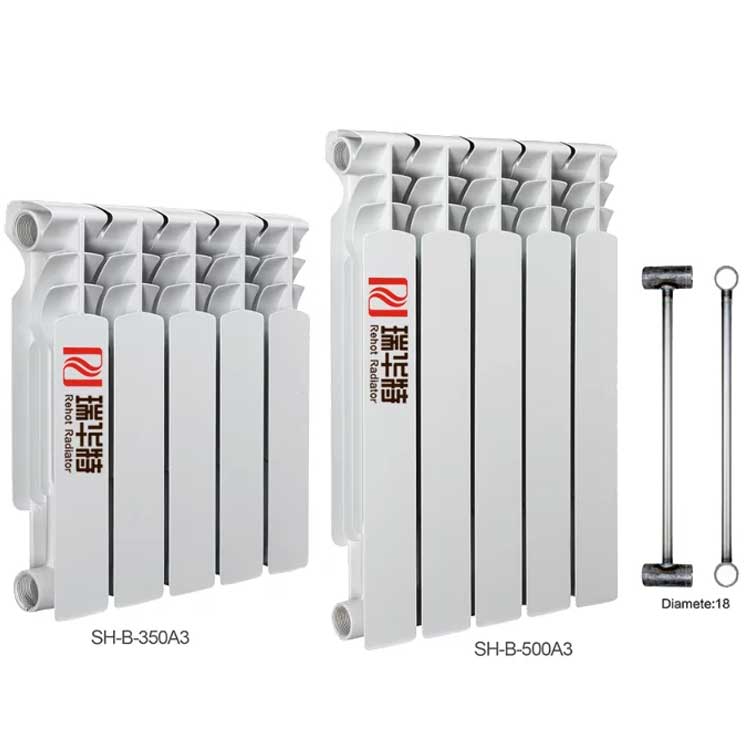 鋼鋁復合暖氣片:分水管及散熱管采用低碳鋼管,散熱翼為優質鋁型材。山東散熱器品牌瑞華特自動螺旋脹管工藝確保脹管無間隙,焊接設備及技術保證焊接強度高,承壓能力強。